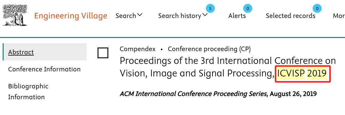 ICVISP 2017 | Osaka, Japan Publisher: IEEE Indexed by EI | Scopus ISBN: 978-1-5386-0612-4 | ICVISP 2018 | Las Vegas, USA Publisher: ACM Indexed by EI | Scopus ISBN: 978-1-4503-6529-1 | ICVISP 2019 | University of British Columbia Publisher: ACM Indexed by EI | Scopus ISBN: 978-1-4503-7625-9 | ||