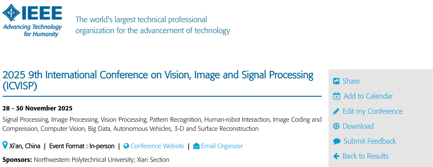 [2025-6-17] ICVISP 2025 is listed on IEEE Conference List!