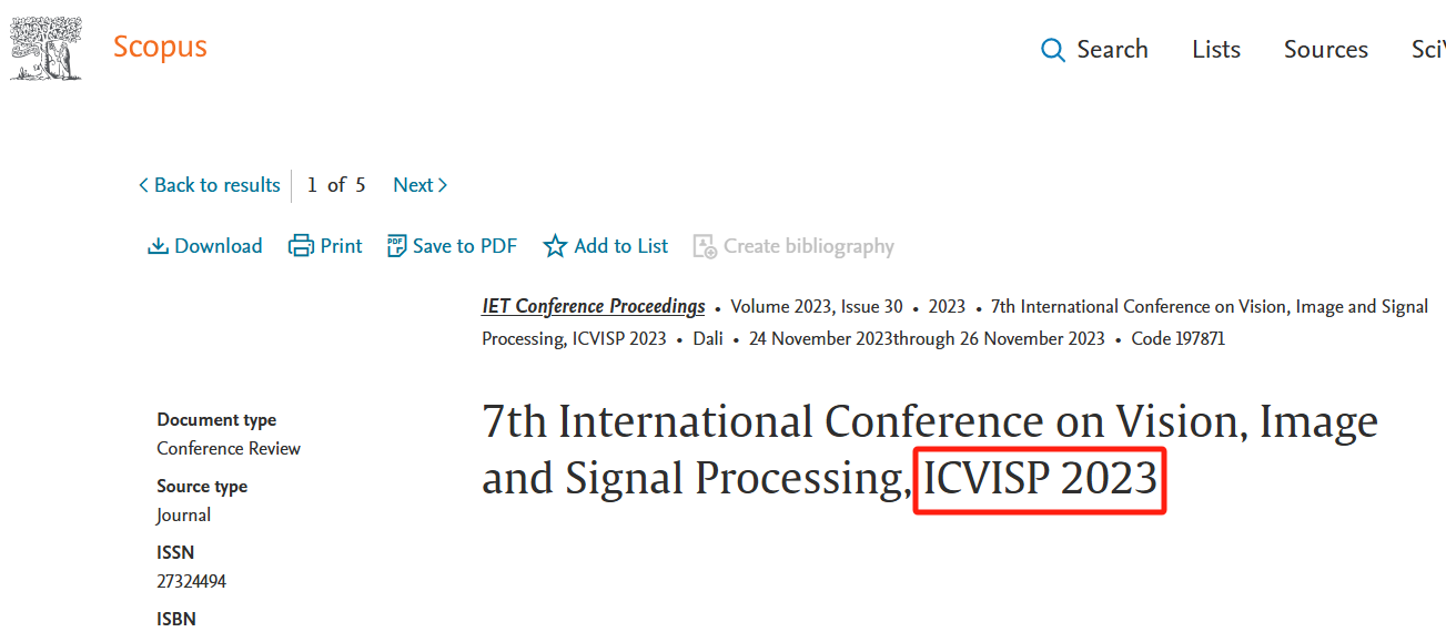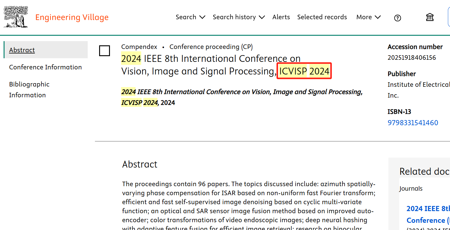ICVISP 2023 | Dali, China Publisher: IET Indexed by EI | Scopus ISBN: 978-1-83724-014-2 | IEEE ICVISP 2024 | Kunming, China Publisher: IEEE Indexed by EI | Scopus ISBN: 979-8-3315-4146-0 |