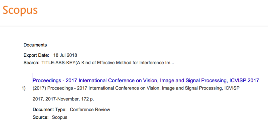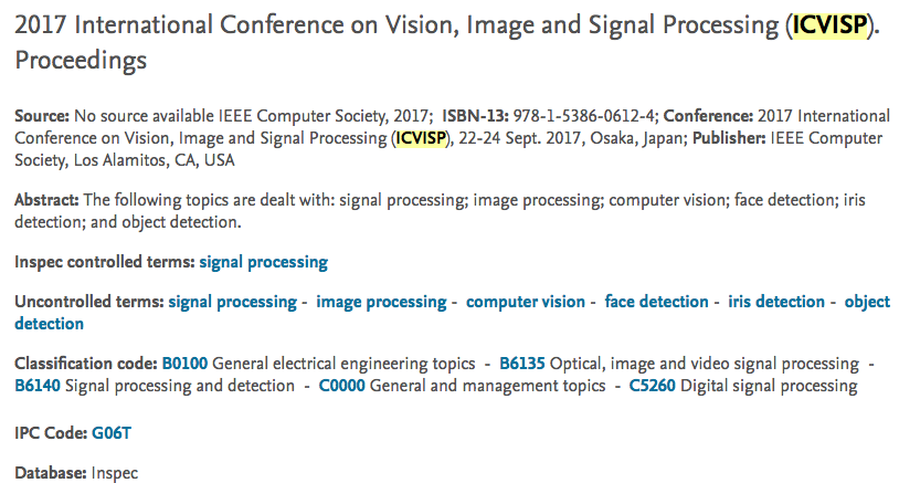 ICVISP 2017 has been indexed by Inspec, EI Compendex and Scopus.