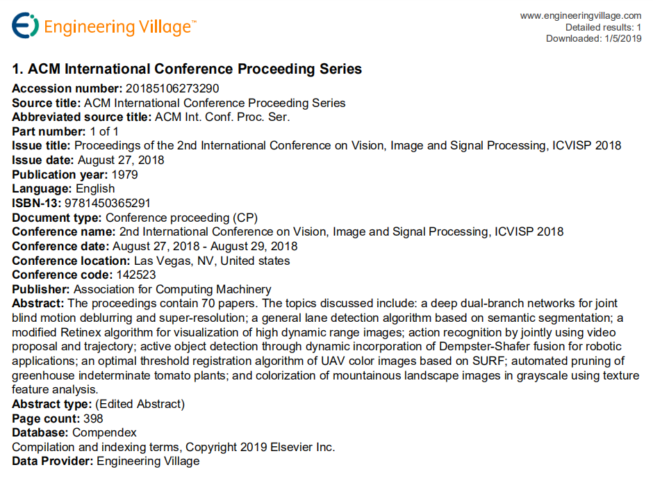ICVISP 2018 has been held at University of Nevada, Las Vegas, USA during August 27-29, 2018.